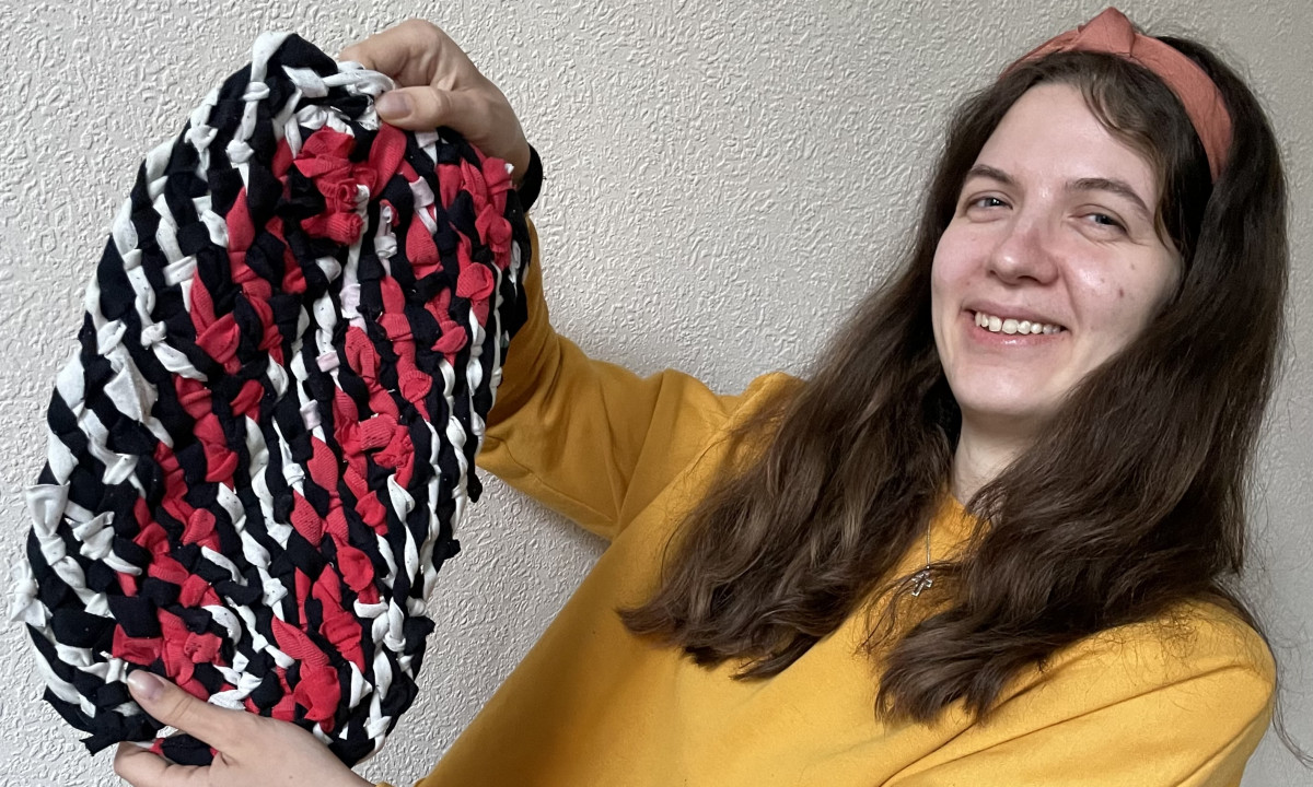 Alle haben ein altes T-Shirt mitgebracht. Diese haben wir zerschnitten und dann haben wir Untersetzer daraus geknüpft. Denn selbst wenn etwas wirklich nicht mehr tragbar ist, ist die Textilie an sich ja nicht wertlos geworden. Bei gleicher Materialauswahl und Technik sind sehr individuelle Werkstücke entstanden.
